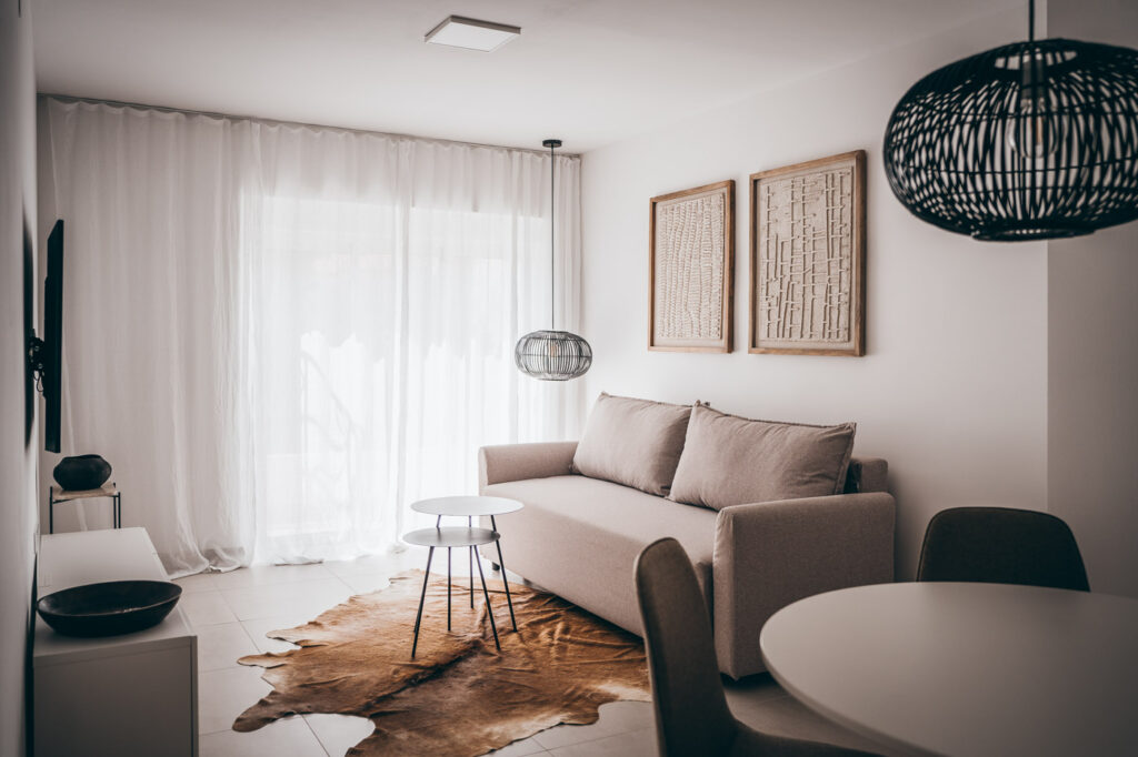The living room’s dominant is the spacious sofa that can turn into another comfortable bed for two. For extra comfort we add another mattress. You are also free to enjoy the Smart TV.The balcony is connected to the living room through a big sliding window, where you can for example enjoy your morning cup of coffee.